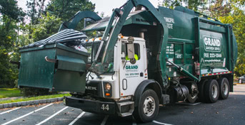 Weekly or daily commercial service is available from Grand Sanitation for front or rear load containers. Including office, apartment, restaurant and retail customers, we specialize in ally or difficult pickup locations using the newest fleet of trucks and containers in the area to ensure reliable service.